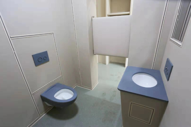 談話室內(nèi)部一般都會(huì)配置獨(dú)立的衛(wèi)生間,方便談話過程中內(nèi)急的使用,但是在衛(wèi)生間內(nèi)部配置的馬桶,必須做到防撞,防火阻燃,防水防潮,環(huán)保等這些功能,所以對(duì)于馬桶的材質(zhì)也是非常嚴(yán)格。