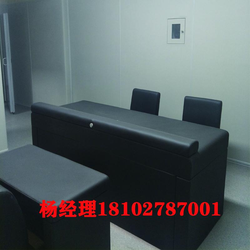 審訊室墻面軟包具有防撞、抗沖擊、回彈性好、阻燃環(huán)保等功能特征,其還可以用作軟包桌椅,洗手臺(tái)馬桶,做好一切安全措施,室內(nèi)不允許出現(xiàn)尖銳硬物。