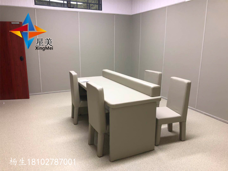 1、墻面安裝新型防撞軟包以防在審訊的過程中嫌疑人通過撞墻或者利用室內(nèi)硬物致殘的行為影響辦案進(jìn)度,再者也是為了防止出現(xiàn)人員沖突的特殊情況,為執(zhí)法人員及嫌疑人的人身安全提供了一個(gè)基礎(chǔ)的保障。