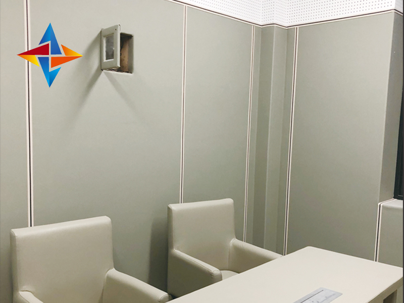 審訊室布局考慮到訊問的嚴(yán)肅性和成像效果,訊問室內(nèi)的布置和顏色,以及審訊桌椅的色調(diào)必須烘托主題,營(yíng)造審訊的氛圍。派出所、檢察院等辦案區(qū)訊問室的墻面有嚴(yán)格要求,墻面材料需要兼具環(huán)保、防撞、阻燃特性,與傳統(tǒng)的聲學(xué)材料相比,新型材料更加具備以上的能力,能大大提高審訊安全性。從訊問室的威嚴(yán)性和攝像機(jī)拍取視頻圖像的角度說,訊問室整體裝修色調(diào)不要太花哨,不易進(jìn)行過多的擺設(shè)。