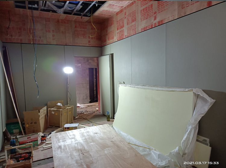 按照設(shè)計要求,材料的厚度為20mm、30mm,規(guī)格為1250*2450毫米,墻面高度一般為3米,0.6米做吸音板,顏色分為淺灰或米黃,防線和定位精準,需在談話室墻面輕鋼龍骨做好木工底板用于安裝,材料為環(huán)保E0級,且甲醛濃度小于0.1毫克標準,符合設(shè)計要求及現(xiàn)行產(chǎn)品技術(shù)規(guī)范。輔助材料包括中線收邊條,PVC卡扣底座以及門邊線,牢固連接每個相連點的縫隙,嵌縫小于10毫米范圍。