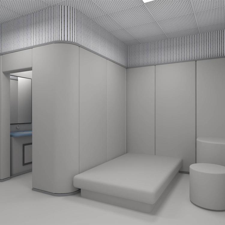 在審訊室內(nèi),設(shè)置獨(dú)立衛(wèi)生間,是采用軟包覆蓋,采用軟質(zhì)硅膠防撞洗手臺、硅膠防撞蹲便器。在留置區(qū)內(nèi)部,設(shè)置軟包防撞桌椅,方便審訊談話所用,還會(huì)設(shè)置人性化的暗藏式床,可嵌入墻體設(shè)計(jì),有可拉伸的帶子。