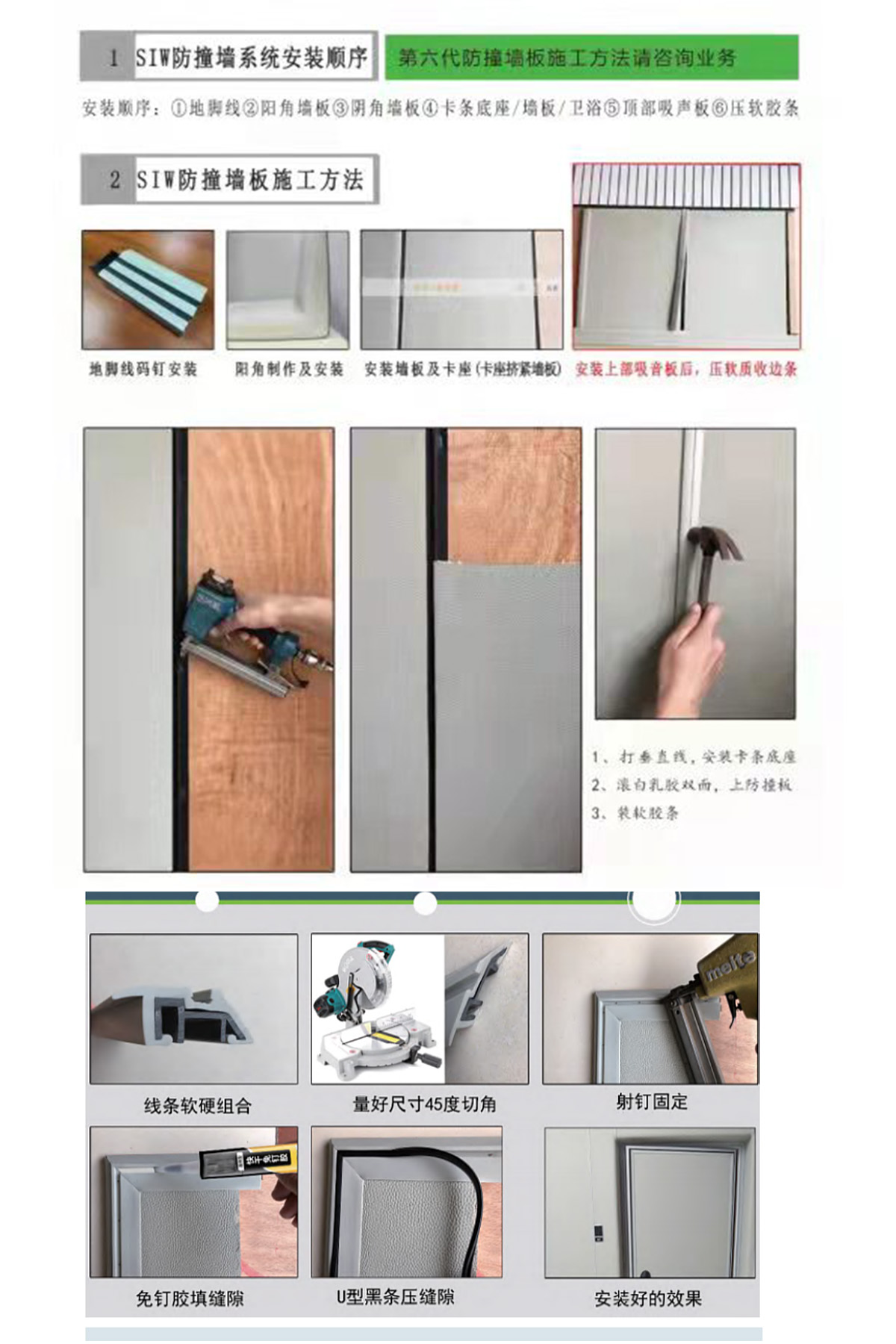 紀檢委防撞軟包標(biāo)準(zhǔn)建設(shè)的案例圖的完成需要的材料信息:采用基材為聚乙稀防撞棉加阻燃皮革無膠復(fù)合而成的軟包,選用20mm或30mm的厚度,規(guī)格可選1250*2450常規(guī)規(guī)格,高度看需要可達3米高。顏色可選淺灰或者米黃色。安裝輔料有地腳線,門邊線,修邊條,卡座等。確保標(biāo)準(zhǔn)建設(shè)的案例圖效果。