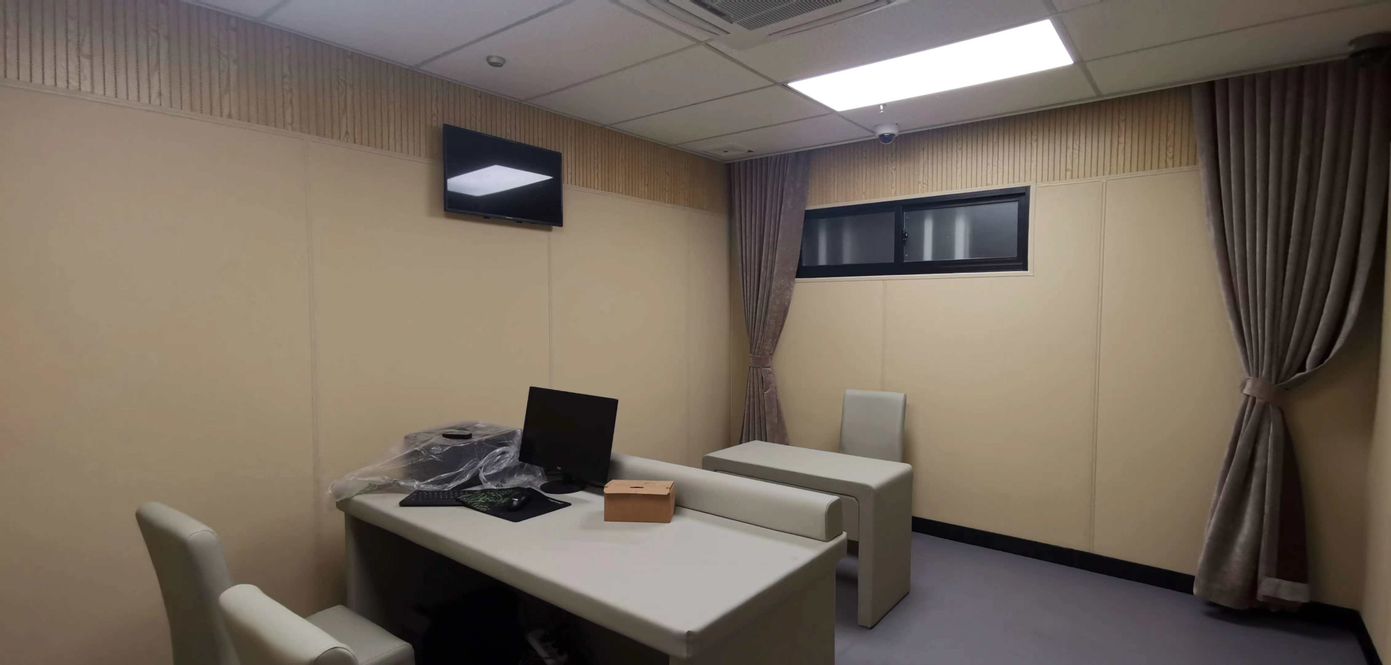 在紀(jì)委辦公辦案地區(qū)的紀(jì)檢委墻面建設(shè)防撞軟包時(shí),施工前需清理墻面,以保證其堅(jiān)固、平整、潔凈,無油膩、蠟、塵埃、脫模劑等以及其它碎屑物質(zhì),有的審訊室室內(nèi)裝修完的房子會(huì)出現(xiàn)滲水漏水的現(xiàn)象,造成墻壁發(fā)霉,乃至掉落,屋里地板受潮,所以墻面處理是防水施工的關(guān)鍵,如有孔隙、裂縫等缺陷的,預(yù)先用水泥砂漿修補(bǔ)抹平。