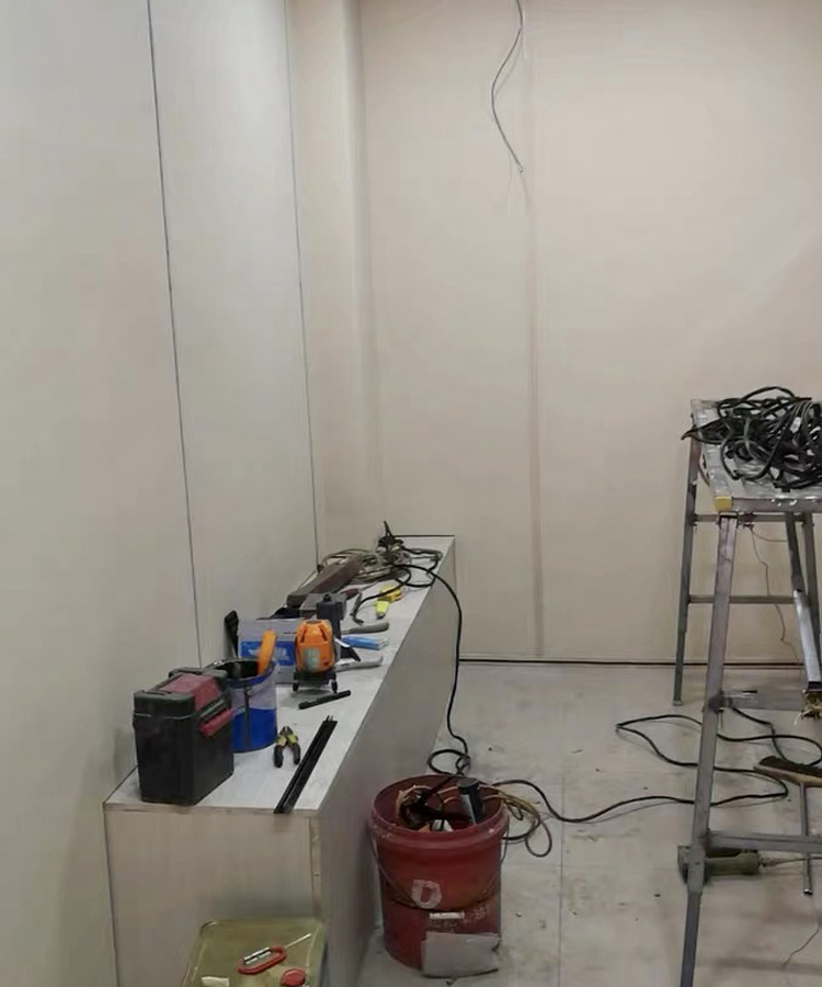 3.施工后,查看軟包墻板邊緣是否有縫隙,如縫隙較大可補膠處理,留置室四周陰陽角施工在軟包背面基材開直角槽,小木條加F30射釘固定墻板,待拆下無脫落現象即可用硅膠中線條封邊。