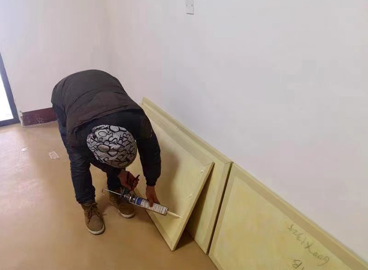 2.施工過程中,碼釘將卡扣類型的硅膠條底座按照預留位置固定,用質檢的化工膠水,例如結構膠、環(huán)保免釘膠或是混合比例的強力膠,均勻地抹平在防撞軟包墻板背面與墊層表面并粘合;