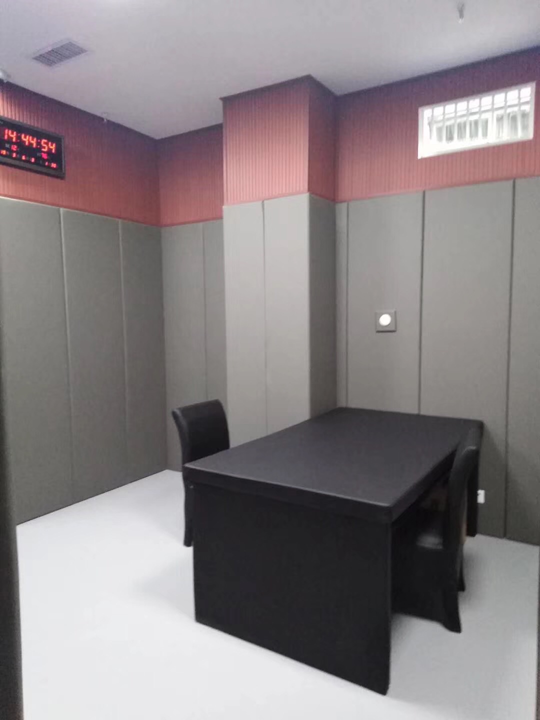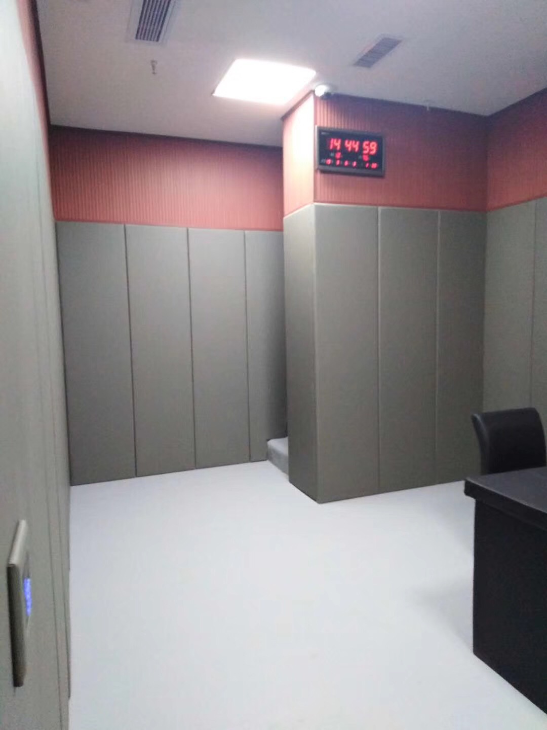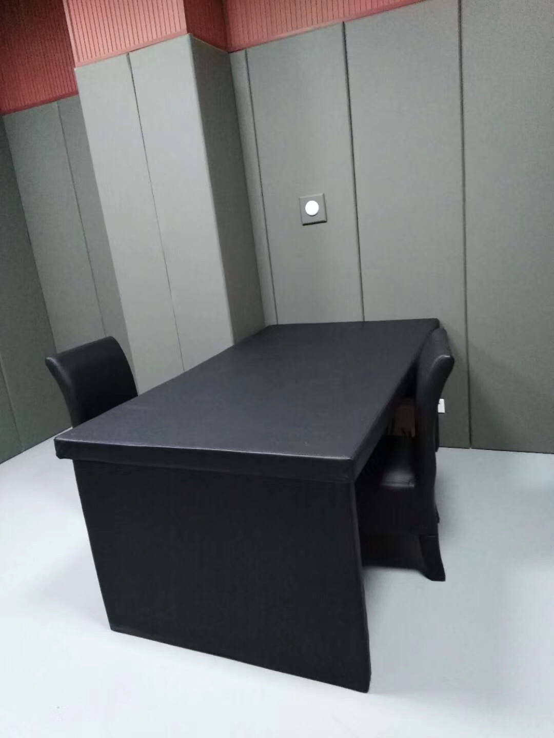 隨著社會(huì)的發(fā)展人們的需求,人身安全與秘密極其重要,審訊室在詢問犯人時(shí)防止外面的人聽到,也防止犯人自殺及自殘自傷的行為,帶來的不必要的麻煩,采用防撞材料體現(xiàn)對(duì)于犯人的人愛護(hù),詢問隱私的一種保護(hù)(隔音,防止聲音外傳),也防止噪音給審訊帶來的干擾。